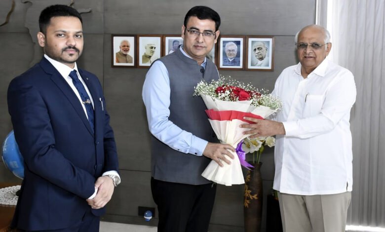 अहमदाबाद : उत्तर प्रदेश के वाराणसी से स्थानांतरित होकर उत्तरी गुजरात परिक्षेत्र, अहमदाबाद के पोस्टमास्टर जनरल बने कृष्ण कुमार यादव ने गुजरात के मुख्यमंत्री भूपेन्द्रभाई पटेल जी से गांधीनगर स्थित उनके कार्यालय में शिष्टाचार मुलाकात की। इस दौरान डाक विभाग द्वारा विभिन्न सेवाओं में किये जा रहे नवाचार के बारे में उन्हें जानकारी दी। मुलाकात के दौरान उन्होंने मुख्यमंत्री को अपनी पुस्तकें भी भेंट की। श्री काशी विश्वनाथ मंदिर प्रसाद के साथ भारत सरकार के राज चिन्ह के साथ जारी ‘जय हिंद’ डाक टिकट और ‘रामायण : राम दरबार’ पर जारी डाक टिकट की खूबसूरत प्रतिकृति भी भेंट की, जिसे प्राप्त कर मुख्यमंत्री जी काफी अभिभूत हुए और अपनी शुभकामनायें दीं।
