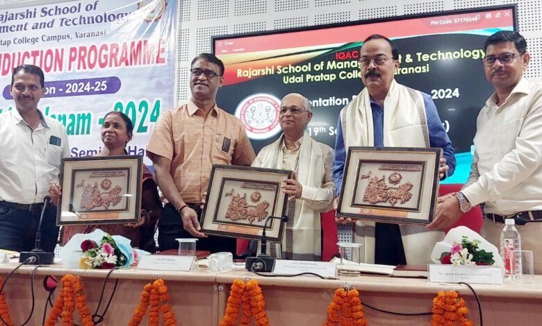 वाराणसी : राजर्षि स्कूल ऑफ मैनेजमेंट एंड टेक्नोलॉजी (आरएसएमटी) में एमबीए एवं एमसीए के सात दिवसीय ओरिएंटेशन कार्यक्रम शुरुआत औपचारिक हुई। मुख्य अतिथि प्रोफेसर एच.पी. माथुर, पूर्व डीन, प्रबंधन अध्ययन संस्थान, काशी हिन्दू विश्वविद्यालय, ने नवप्रवेशी छात्र-छात्राओं को संवाद कौशल विकास, सामूहिक कार्य संपादन, नेतृत्व क्षमता और विशेष समाधान कौशल पर ध्यान केंद्रित करने के लिए प्रेरित किया। उन्होंने यह बताया कि ये कौशल न केवल उनके शैक्षणिक जीवन में बल्कि उनके पेशेवर करियर में भी अत्यंत महत्वपूर्ण हैं।